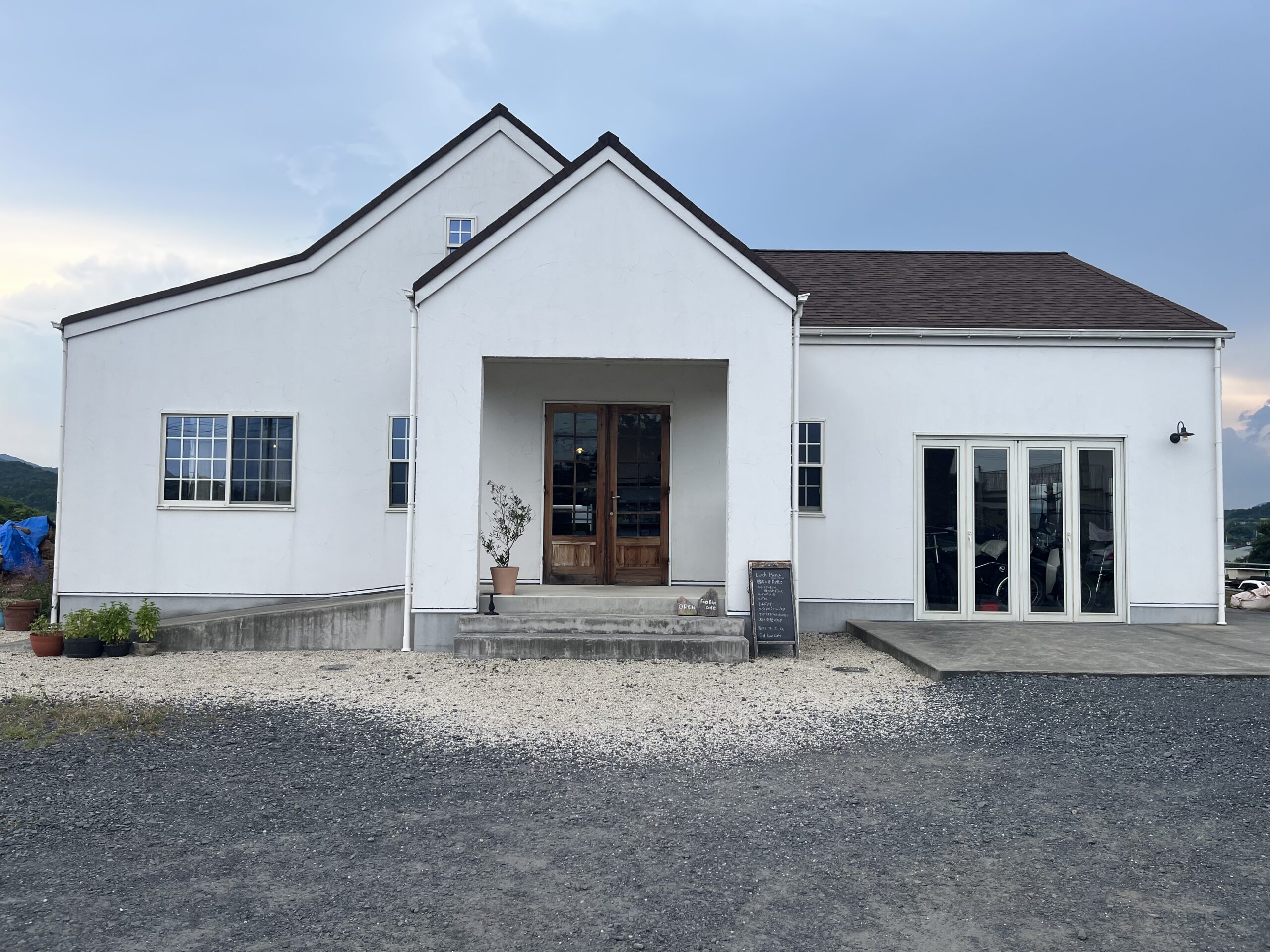白い塗り壁と茶色の屋根が青空に映える素敵な佇まいが目を引きます‼️