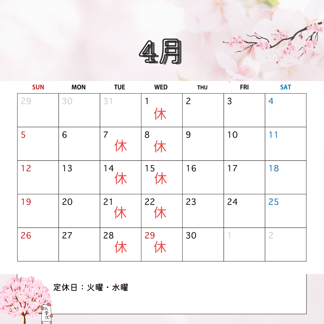 1日・7日・8日・14日・15日・21日・22日・28日・29日