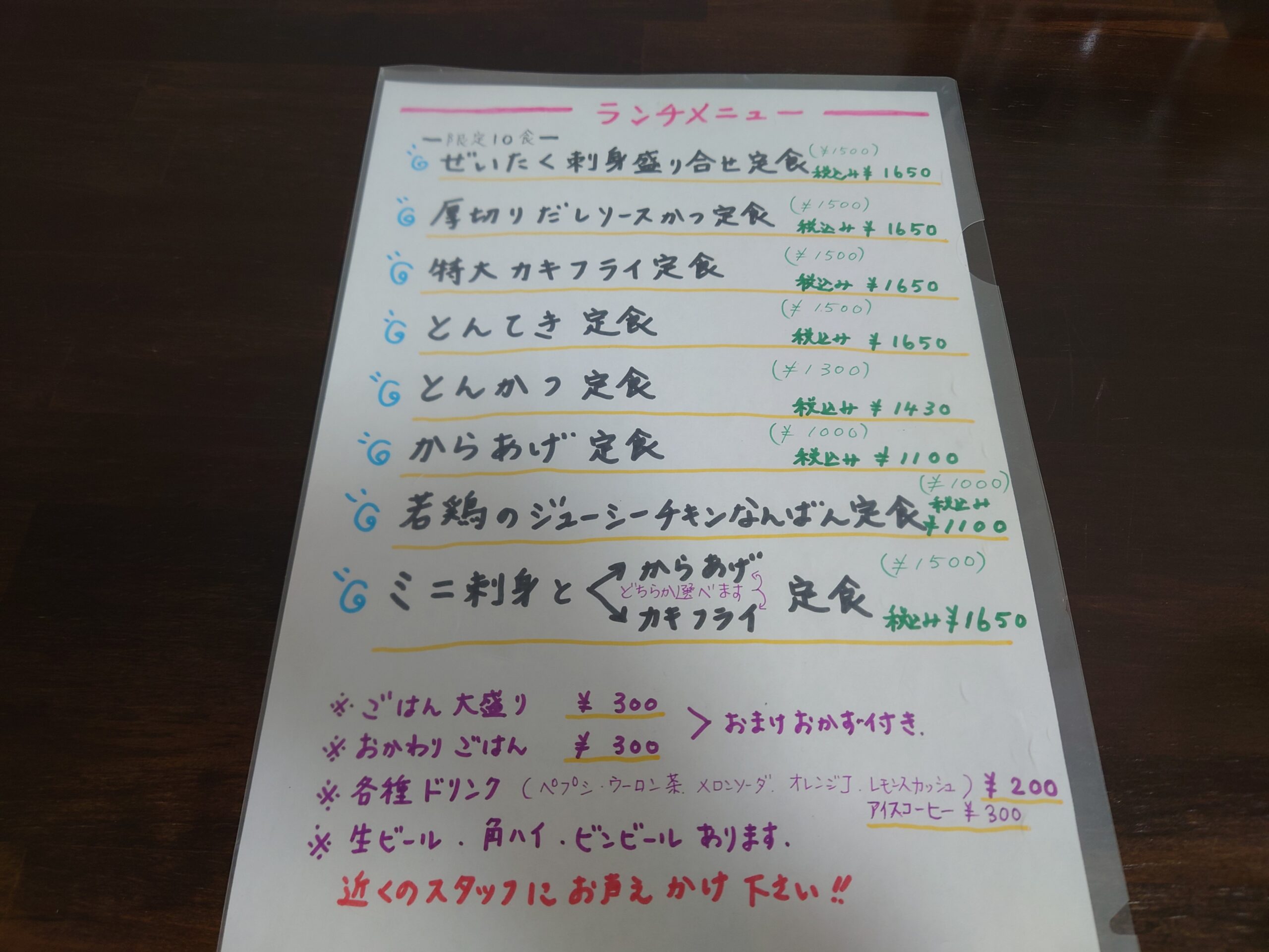 ミニ刺身と〇〇定食があるんですが、次回来た時に刺身盛り合わせを食べたいので選びませんでした。