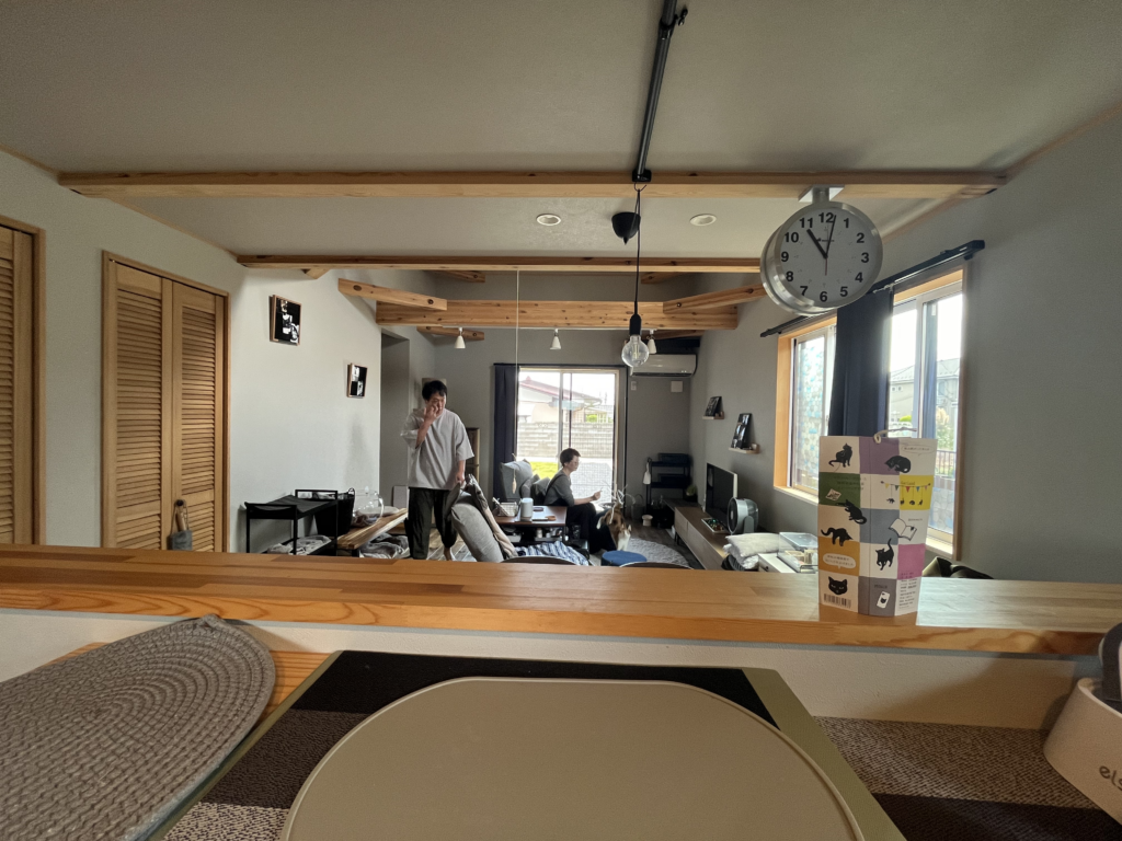 年齢的にそろそろ家が欲しいと、ネットや本で猫と暮らす家を探していました。梁のあるBinOのWAVEを見て、「実物を見たい」と、近くで見学会を開催していた鈴木良工務店を知りました!