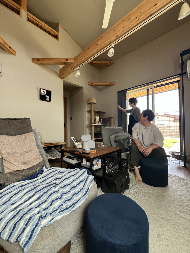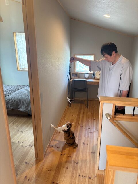 年齢的にそろそろ家が欲しいと、ネットや本で猫と暮らす家を探していました。梁のあるBinOのWAVEを見て、「実物を見たい」と、近くで見学会を開催していた鈴木良工務店を知りました!