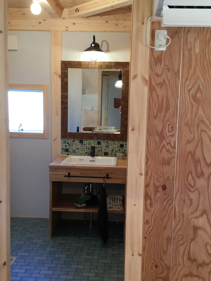 設計の菊池さんデザイン、キッチンの背面収納棚や造作洗面のタイル『every place』一つ一つすべての場所がお気に入り、最高ですっ!
